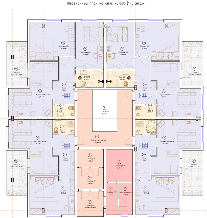 Дом, легко адаптируется под пожелания застройщика. Планировка свободная, количество квартир можно менять. Пятно застройки 350 кв.м.